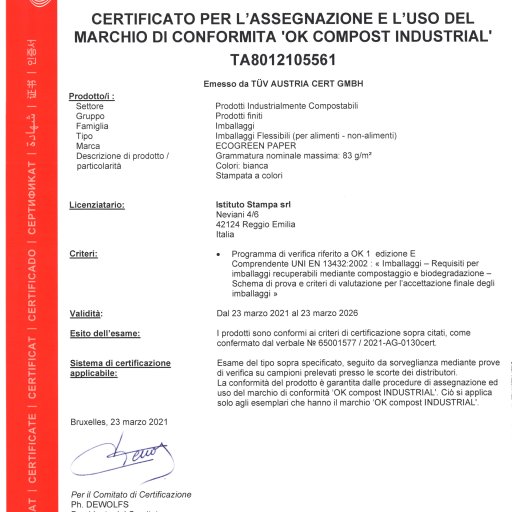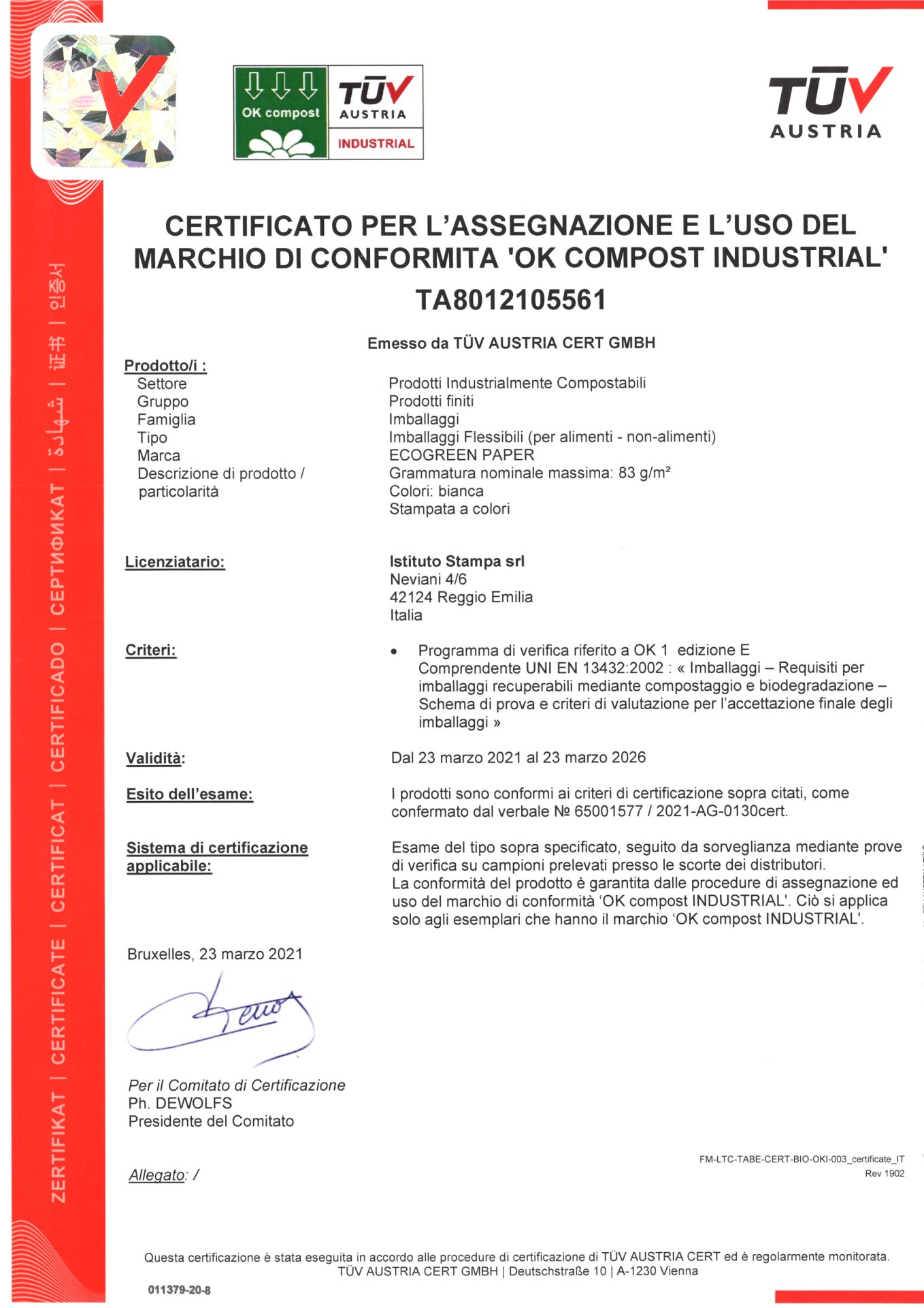 ECO-GREEN PAPER, una carta saldante su se stessa certificata OK COMPOST da Tuv Austria.